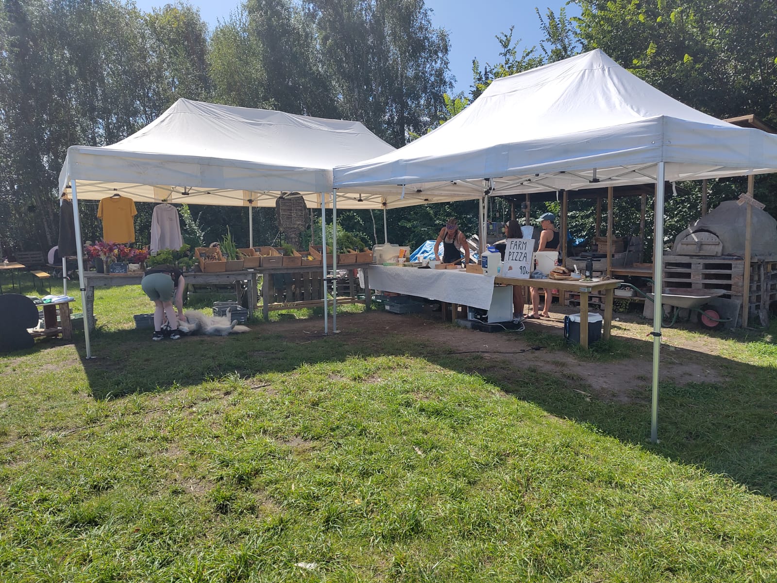 Varje lördag 11-16 har vi öppet för gårdsförsäljning. Vi säljer allt möjligt, från morötter till bönor, tomater och gurka. Vi säljer även färsk pizza från våra lerugnar! Alla ingredienser kommer från gården förutom mjölet till pizzadegen. Pizzaförsäljning börjar kl. 12 och avslutar samma tid som marknaden (16).
