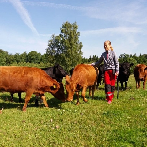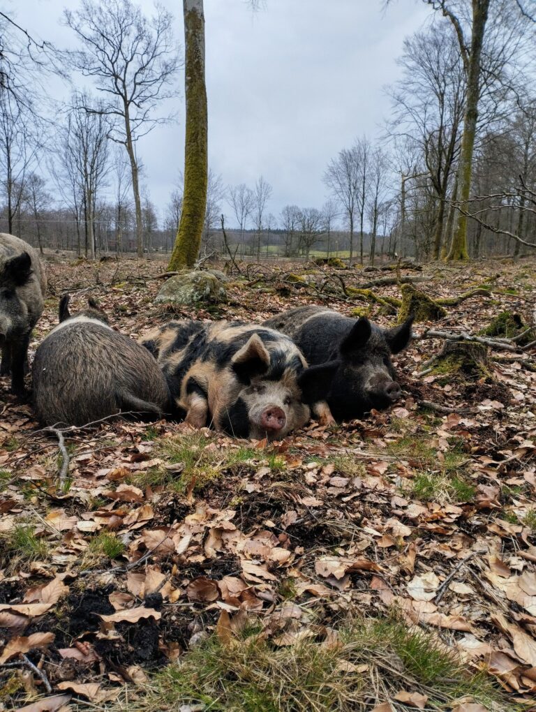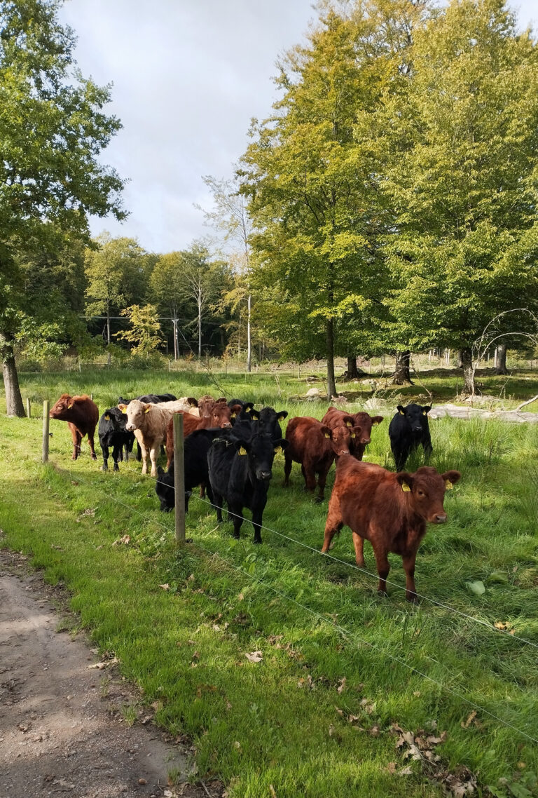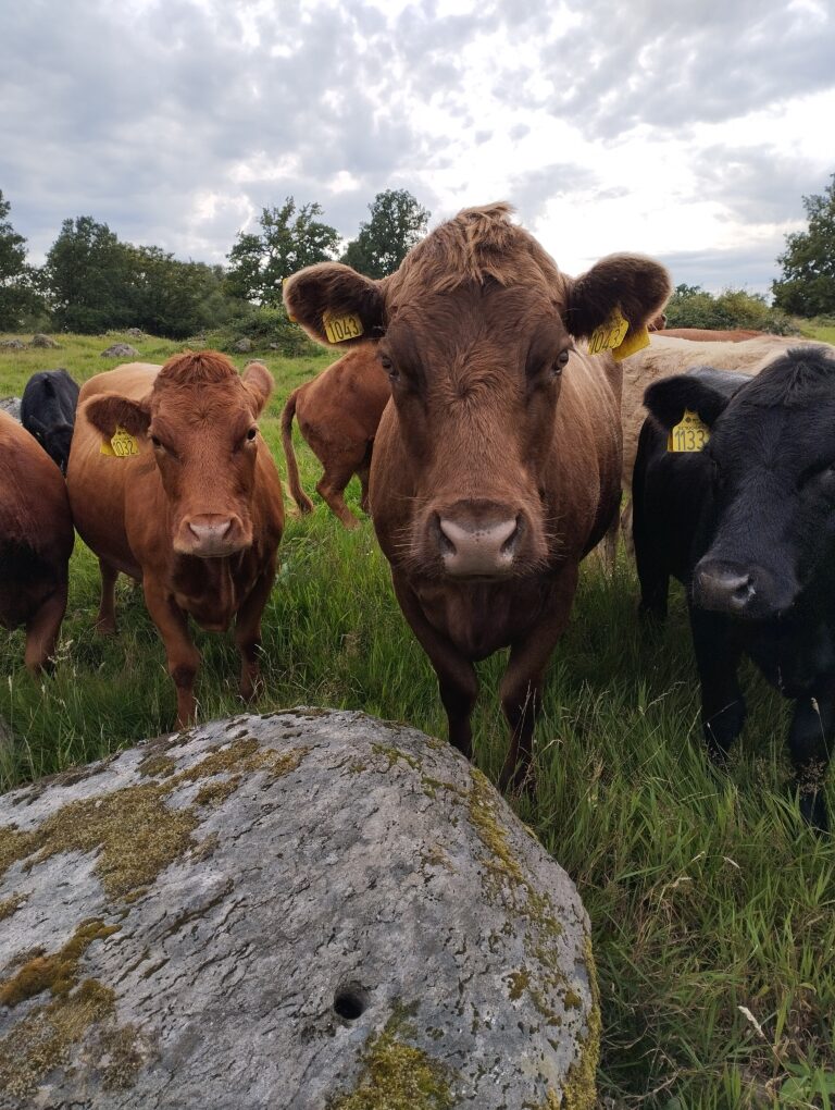 Alla våra djur går på lösdrift året om. De väljer själva om de vill vara inne eller ute. Under betessäsongen betar de uteslutande gräs och örter och på vintern utfodras de med egenproducerat ensilage. Hos oss betar de naturbeten och skogsbete. Inga djur betar på odlingsmark. På betena finns det gott om stengärden, odlingsröse, buskar och skog. Markerna innehåller en stor variation av olika örter. Den rika variationen i växtlighet gör att många olika fågelarter, insekter och djur kan hitta föda och boplatser i det varierande landskapet. Den biologiska mångfalden är stor. Det finns ingen ekonomi eller praktisk möjlighet att odla på markerna som djuren betar. Alternativet för den här typen av betesmark är igenväxning, som i sin tur leder till minskad biologisk mångfald. Vi ser våra djur som medhjälpare och är dem evigt tacksamma för de jobb de gör genom att hjälpa oss med att hålla markerna öppna.