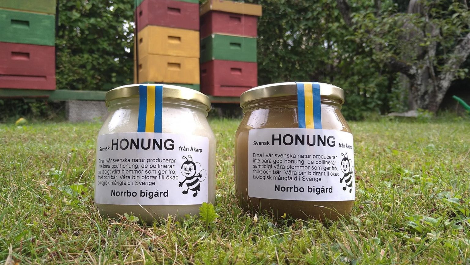 Jag är biodlare sedan 2019 och har mina bikupor i vår trädgård i Åkarp. Jag har även några kupor vid en bondgård i Hjärup och vid skogen i Habo Ljung. Jag tar hand om honungen från kupan och ner i burken utan mellanhänder. Jag slungar honungsrammarna vid flera tillfälle under säsongen för att få flera olika smaker.