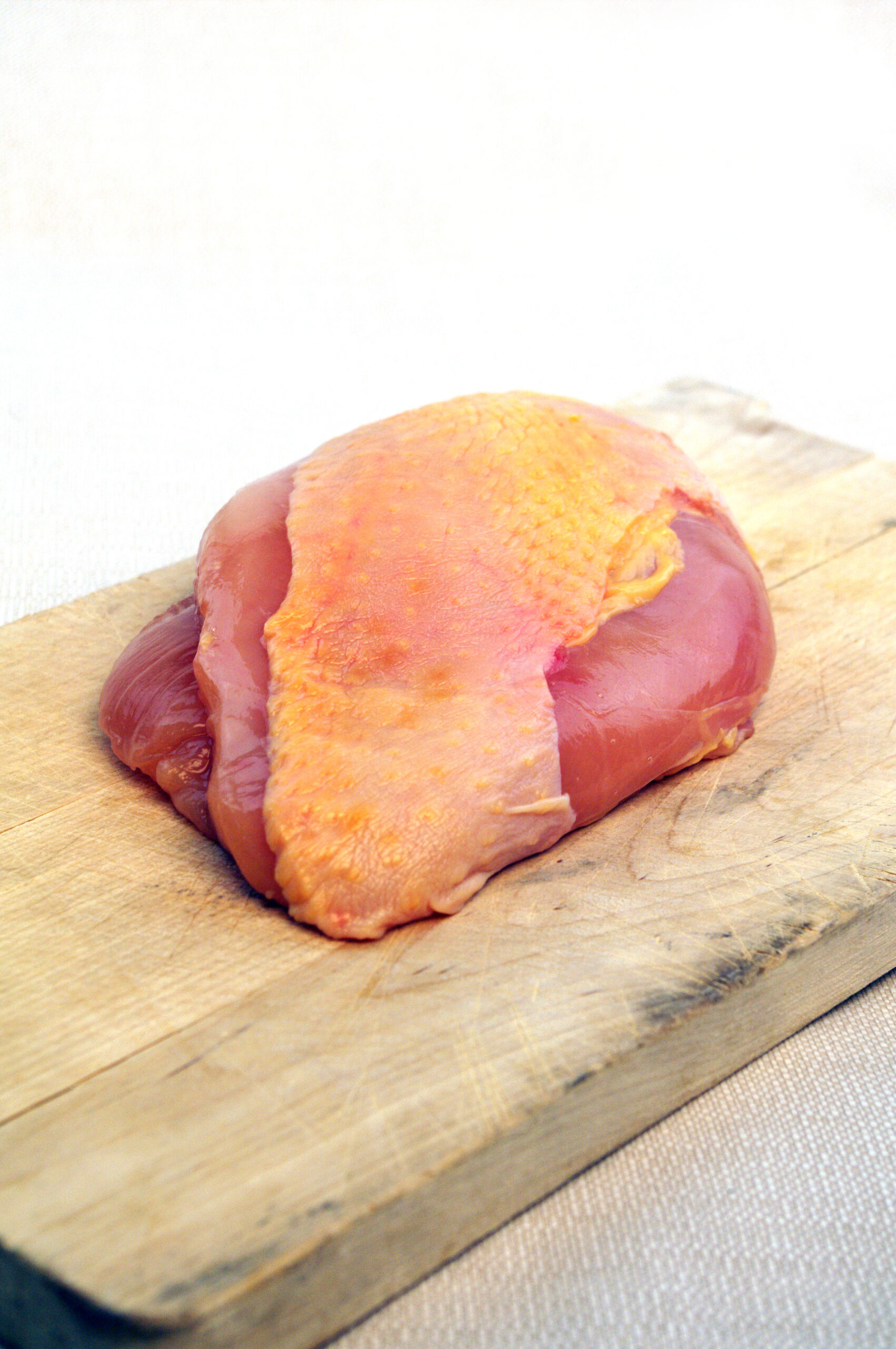 Majskyckling som levt 3 gånger så lång tid som ”vanlig” kyckling, där av storleken.