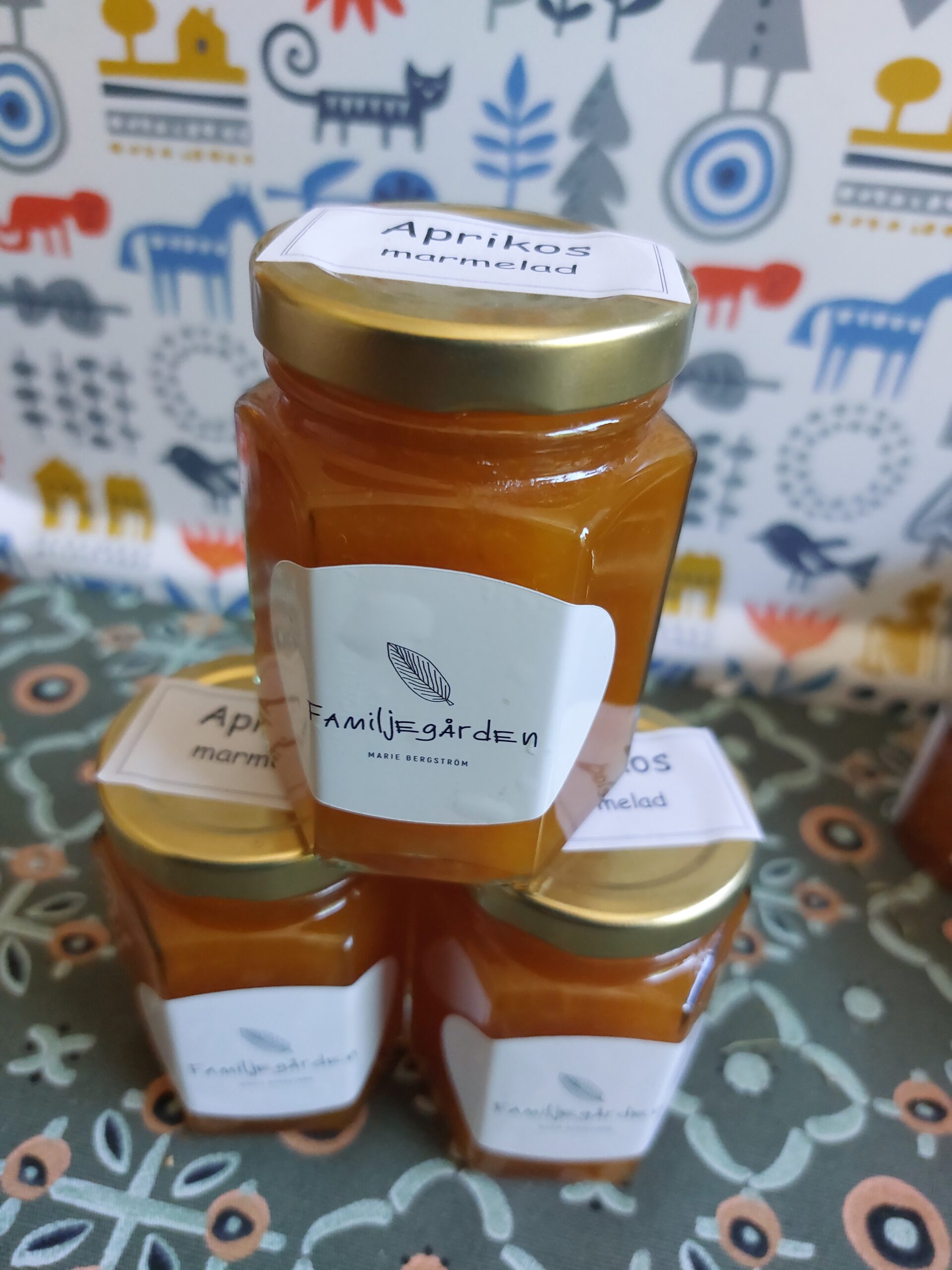 Aprikosmarmelad kokt på lokalproducerade aprikoser från Glashuset i Öslöv.