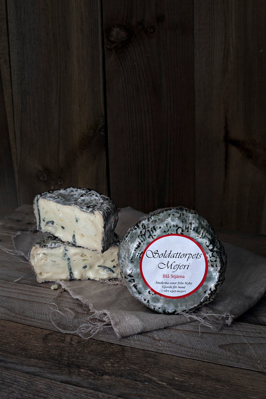 Blå stjärnan blåmögelost från Soldattorpets Mejeri i Klågerup av pastöriserad mjölk. Blå stjärnan har en mild och krämig smak med en balanserad sälta. Osten är lagrad i cirka en månad.