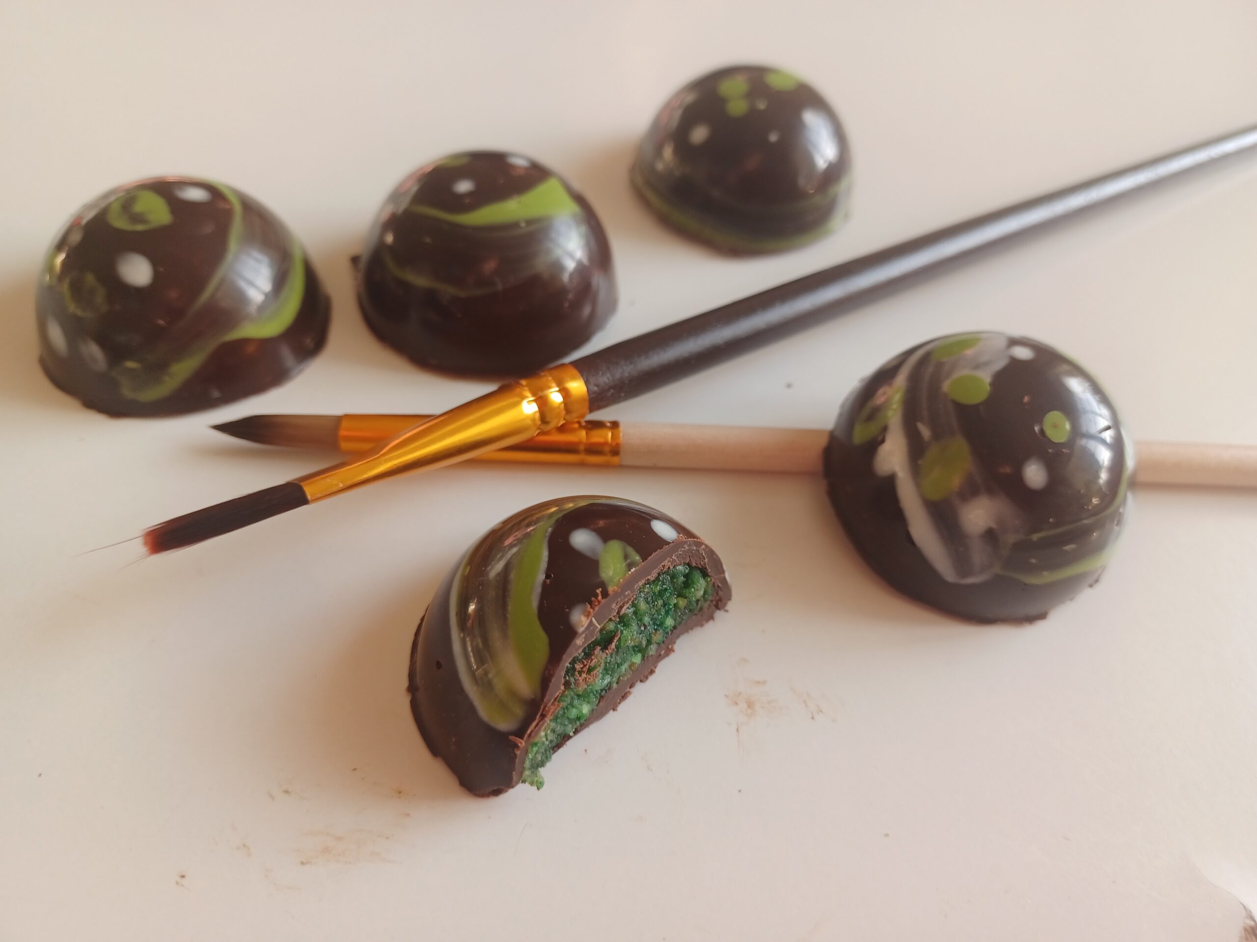 Bara en bit Dubai-lyx! Vi presenterar vår ”Dubai Gold” pistagebonbon, som utlovar orientalisk njutning i alla smaker.