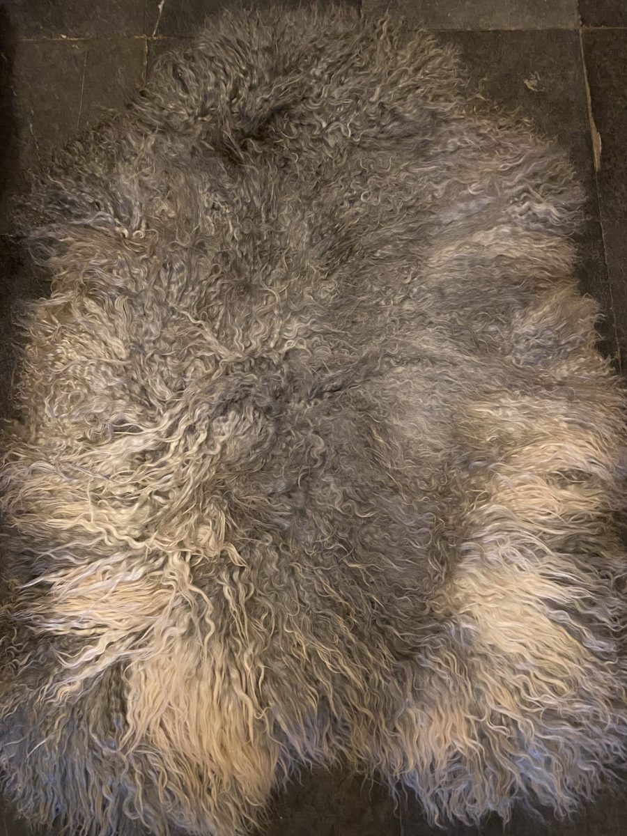 Detta skinn är oklippt och kan inte tvättas. Det mår bra av att läggas i snön om vintern och vädras i kallt väder.