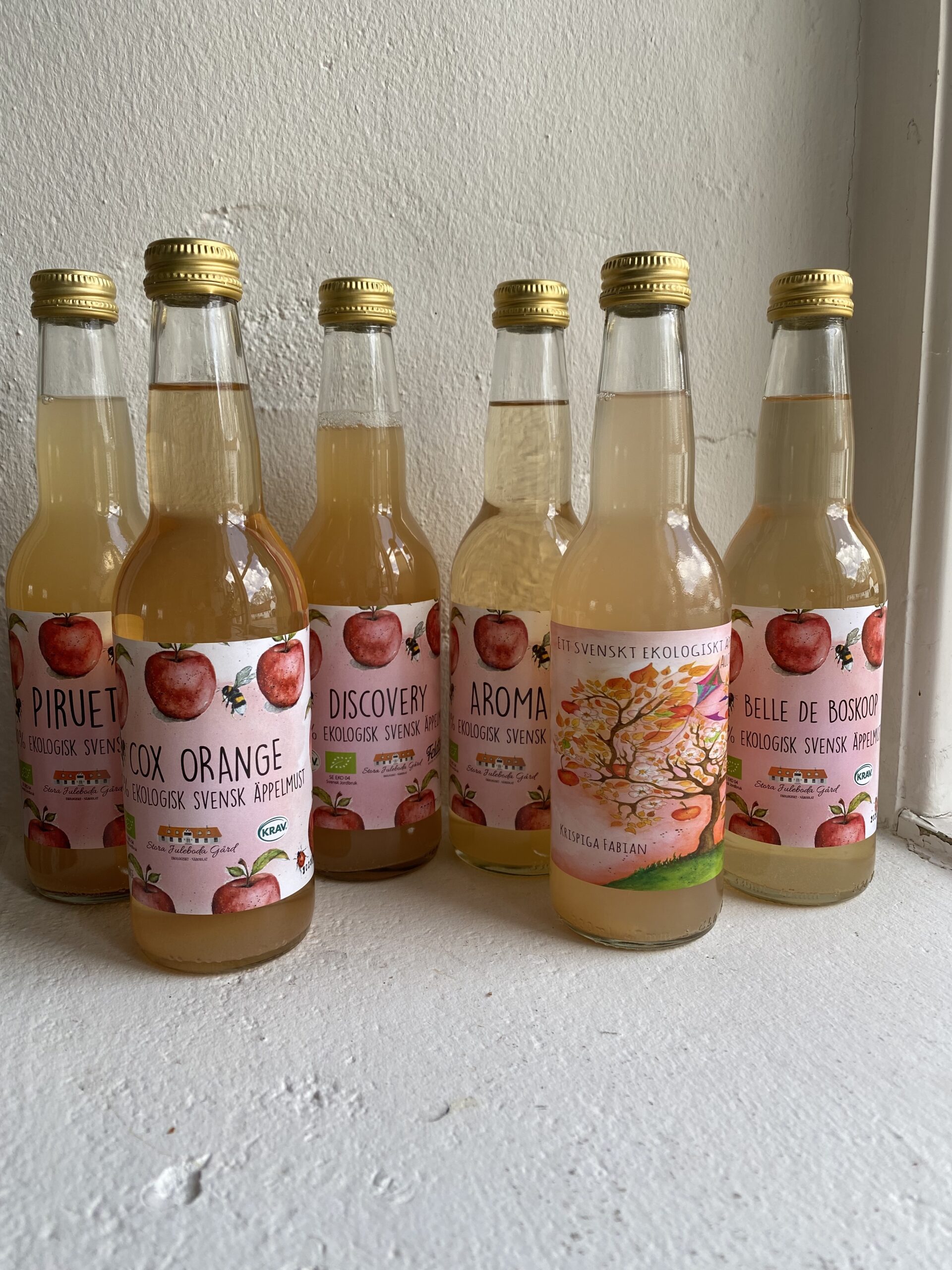 Vår äppelmust tillverkas genom att färska ekologiska äpplen pressas och musten är alltid utan tillsatt socker. Detta är en ljust gulorange must. Tämligen svag äpplig doft. Frisk smak med bra längd och tydlig skalkärvhet. En aromatisk must med obalanserat hög, men trevlig syra och spännande kärvhet. Passar som måltidsdryck, men är alltför syrlig som stand alone. Dessa äpplen skördas först hos oss.