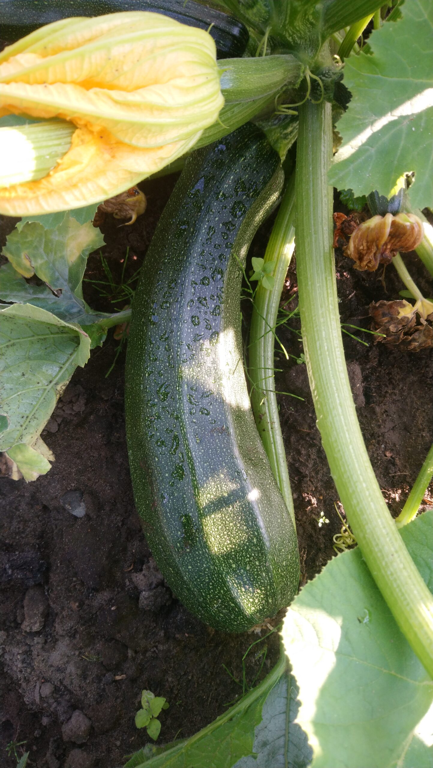 Grön zucchini som är odlad enligt ekologiska principer. Den är odlad på friland i Kabbarp (kommer senare att odlas i Vintrie), helt utan giftiga ämnen.