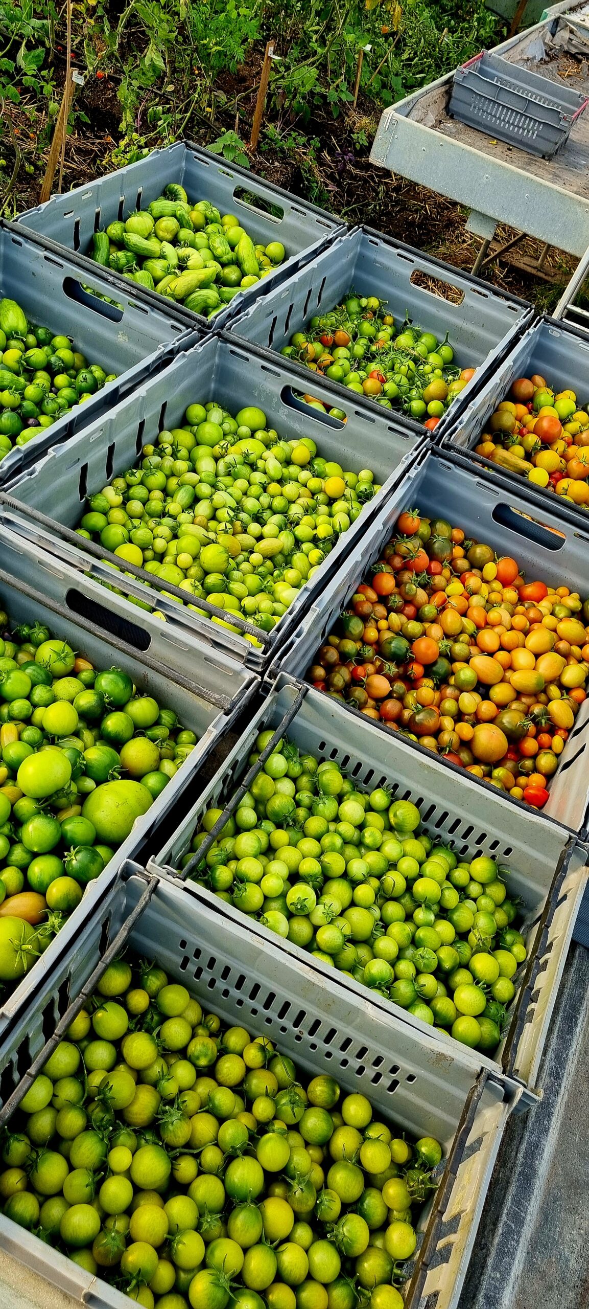 Lägg de gröna tomaterna tillsammans med äpplen, linda in dem i tidningspapper eller häng upp tomaterna i en tvättlina i källaren. Det finns många bra tips om hur du får grönsaken att mogna. Det är dock långt ifrån säkert att de kommer att smaka som tomaterna som mognat i värmen i växthuset.