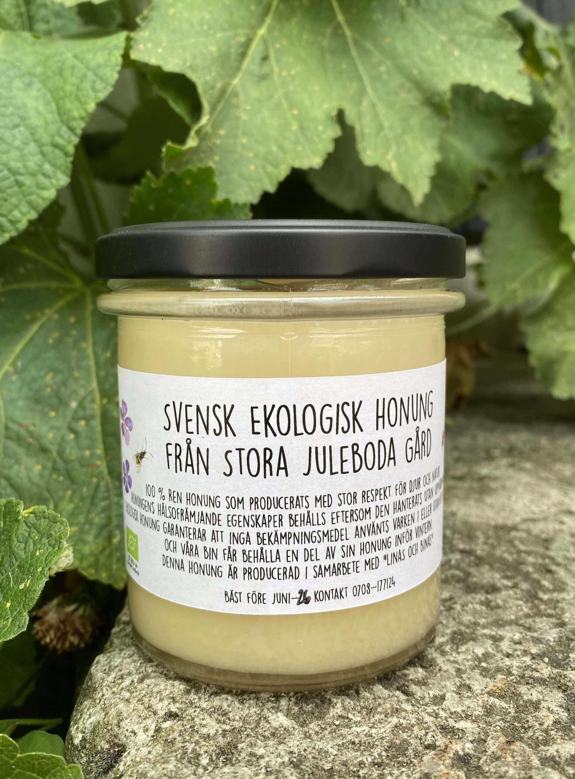 Honungen är KRAV-certifierad och det lämnas alltid en del honung kvar inför vintern och bina matas med ekologiskt foder. Bina hanteras med stor respekt.