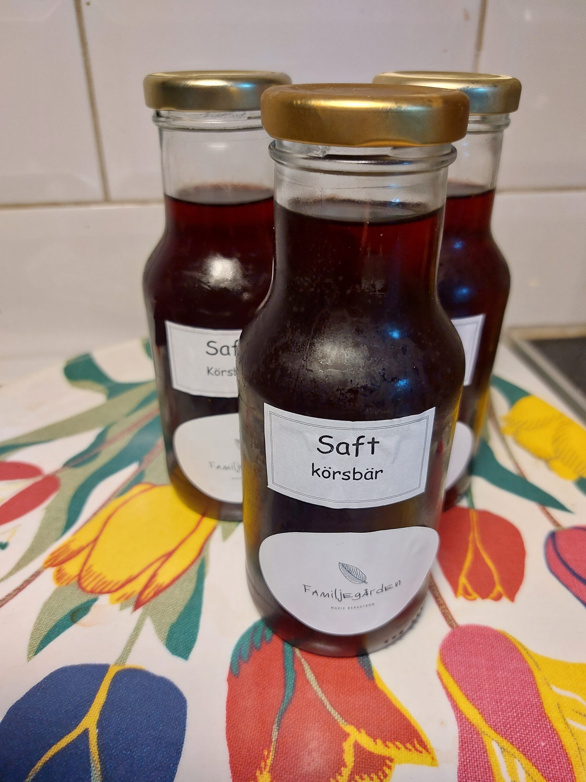 Kokt körsbärssaft. Ingredienser: körsbär och socker. Spädes 1-4