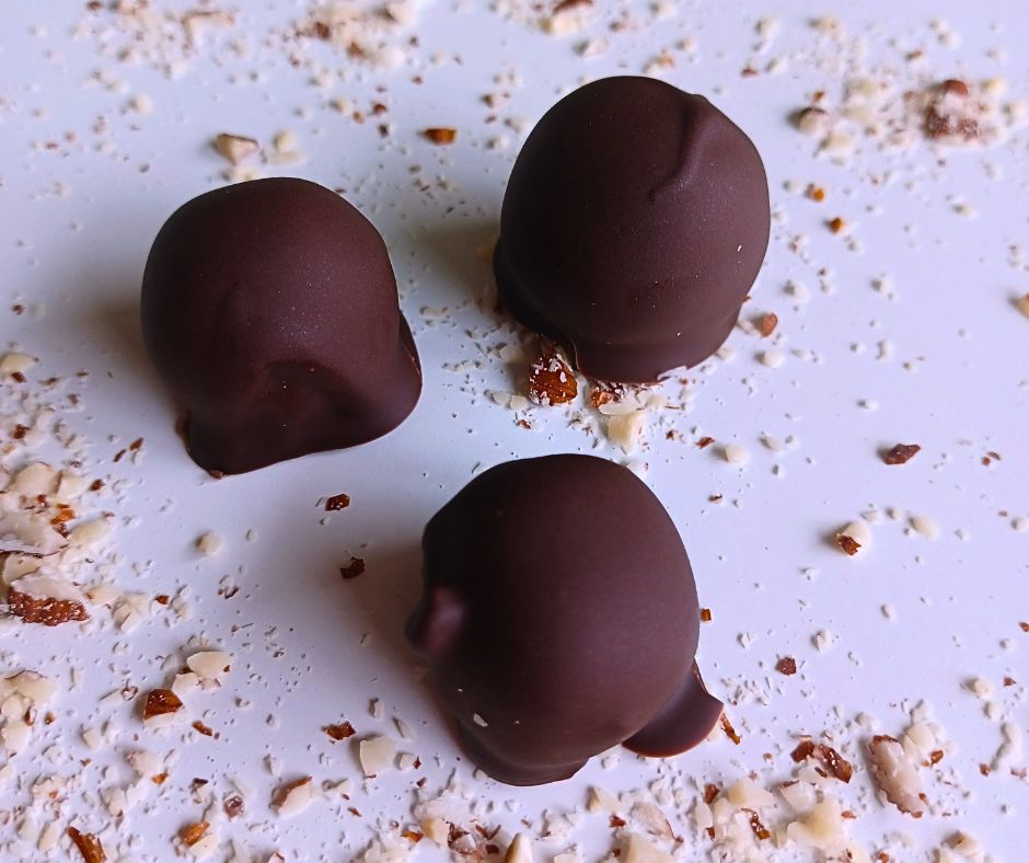 Mandel, dadlar, lakrits, 70% mörk choklad, vegetabilisk grädde