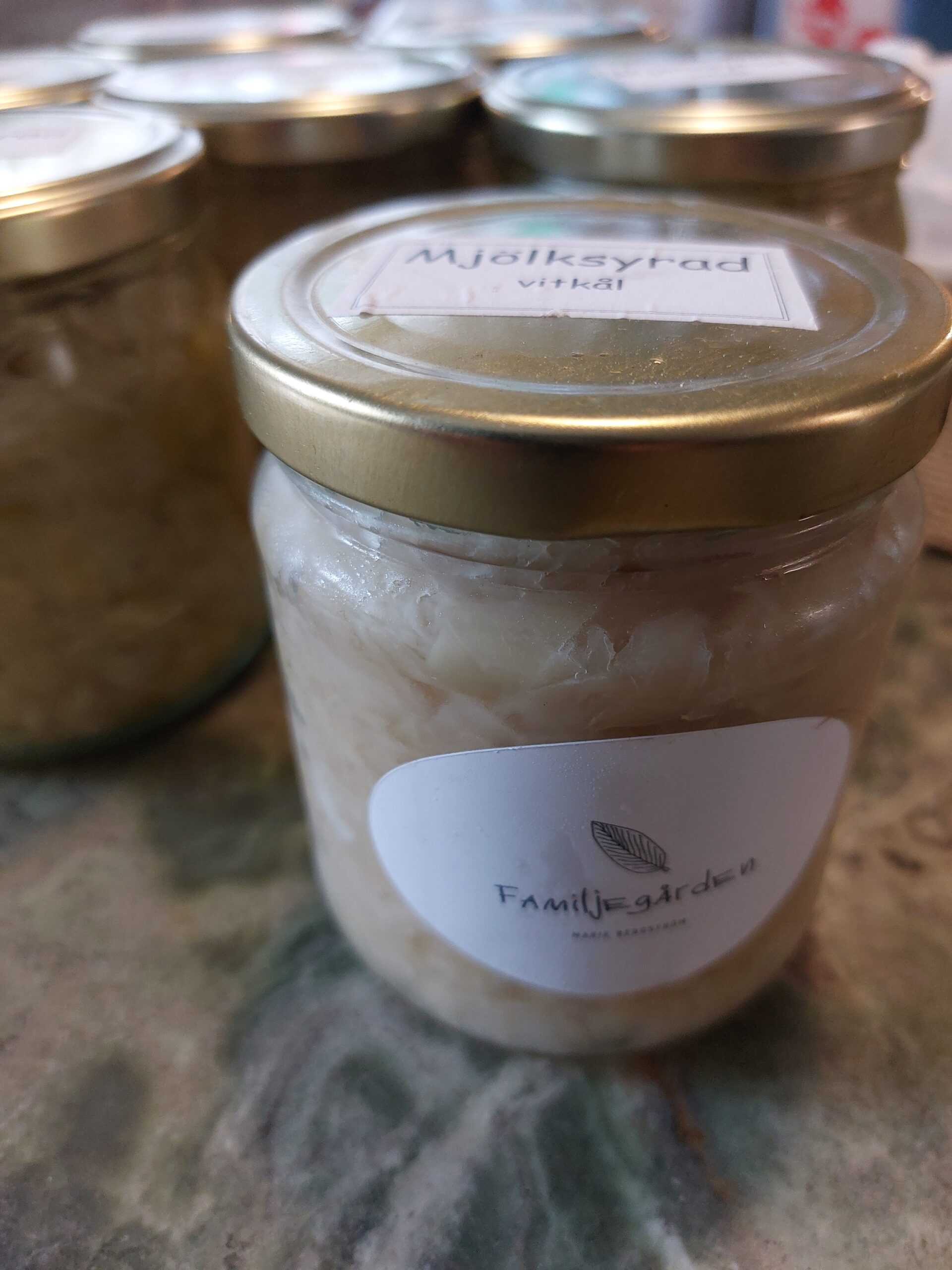 Mjölksyrad vitkål som är opastöriserad och syrad med ekologiskt atlantsalt