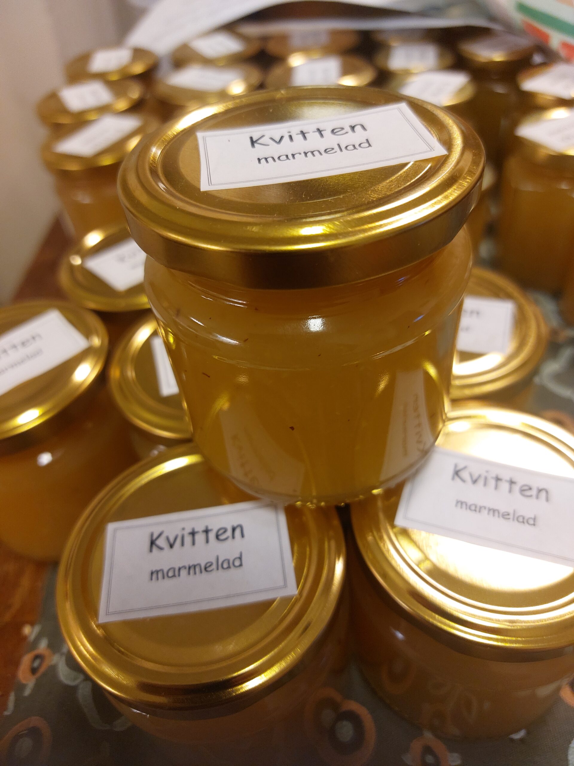 Härligt ljusgul och smakrik marmelad gjord på rosenkvitten och syltsocker