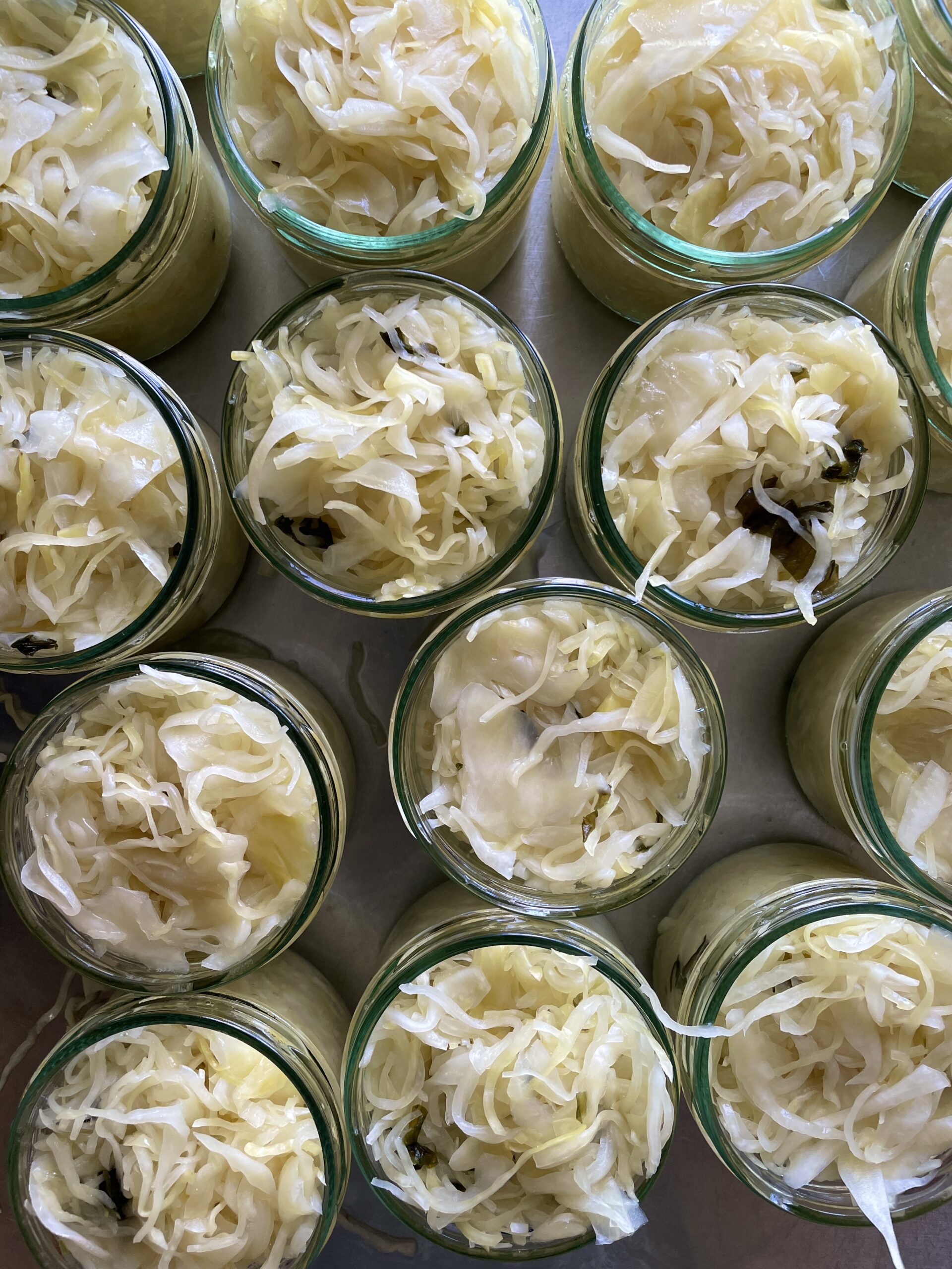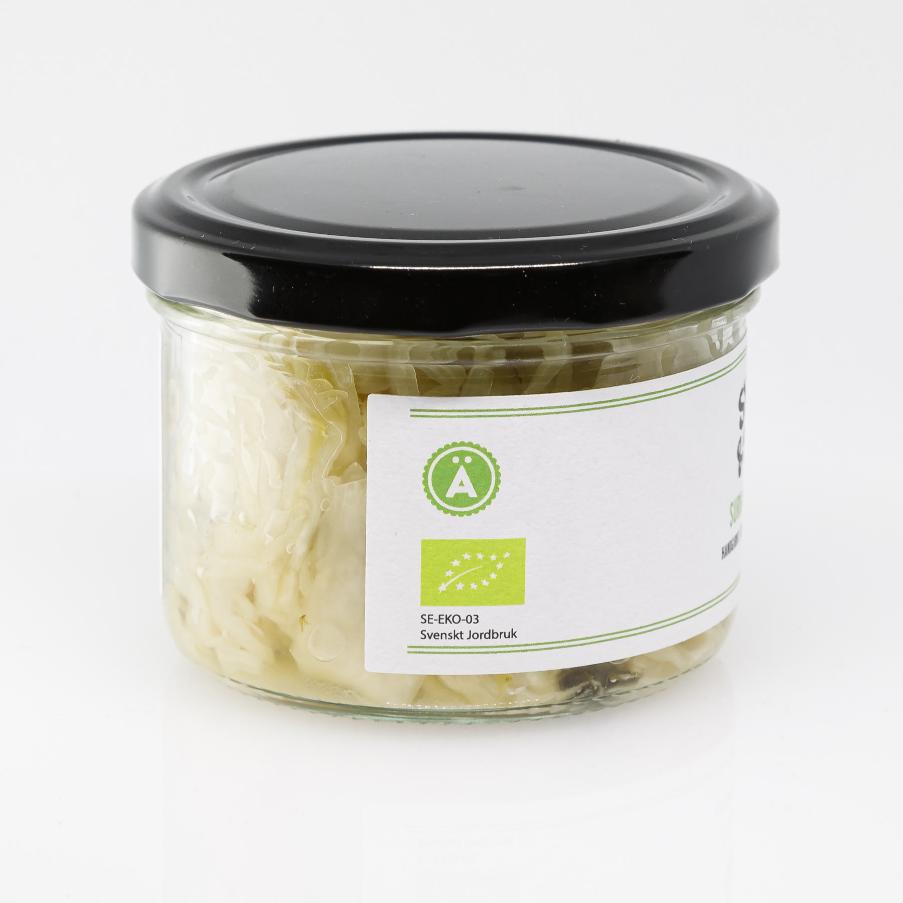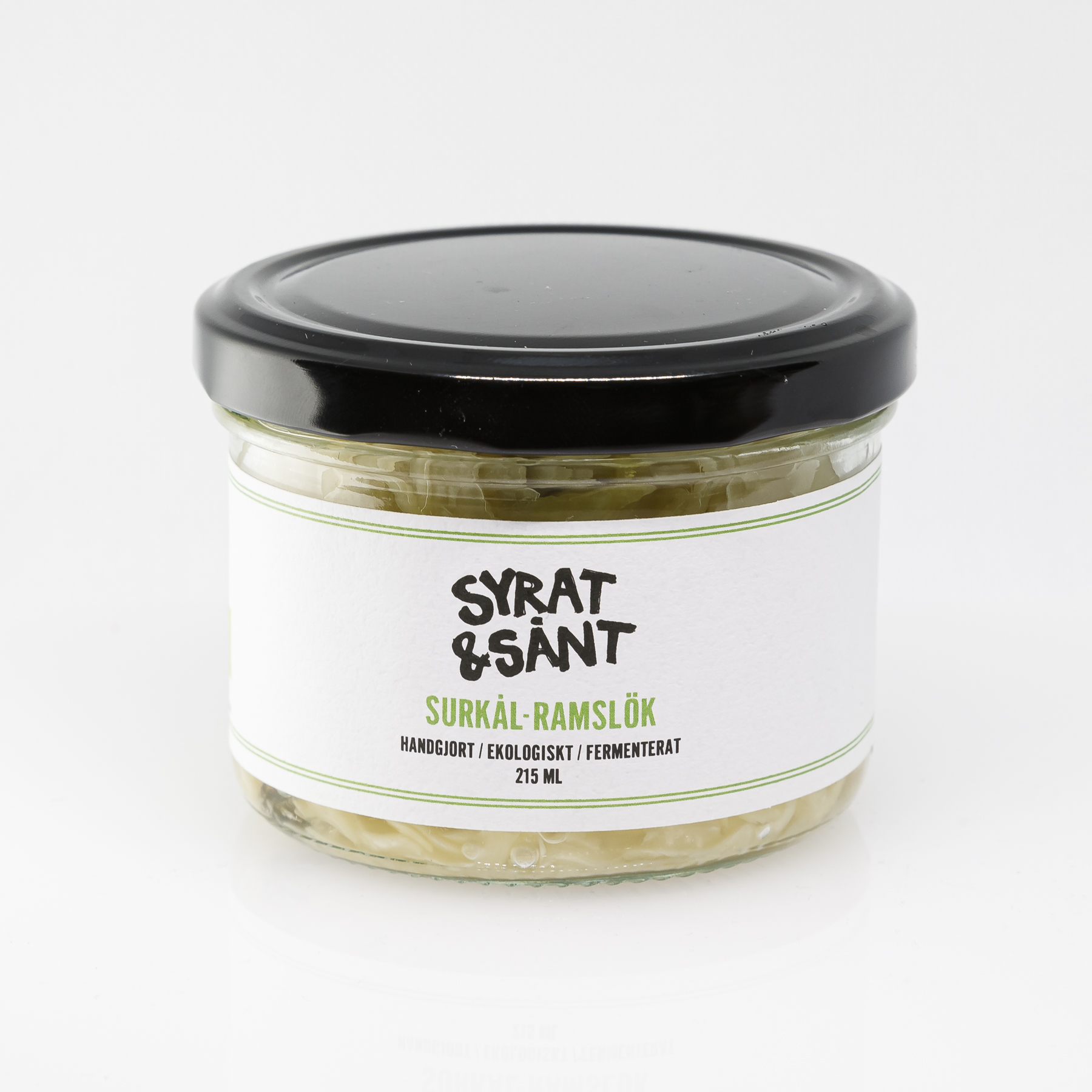 Ekologisk, handgjord surkål med vildplockad ramslök.