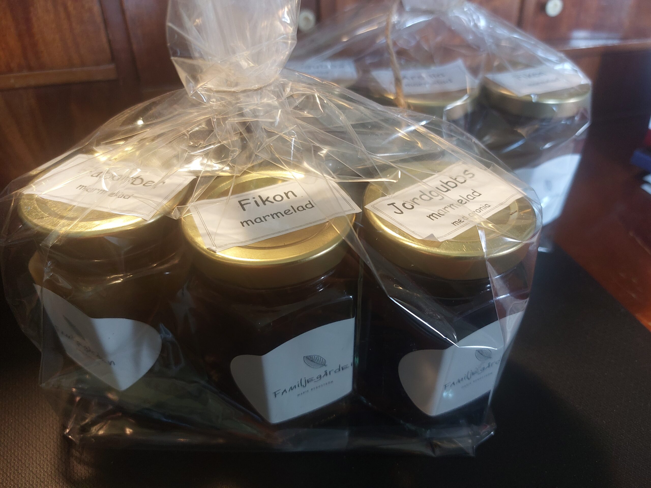Olika smaker marmelad i en cellofanpåse. Varje marmelad ca 100 g