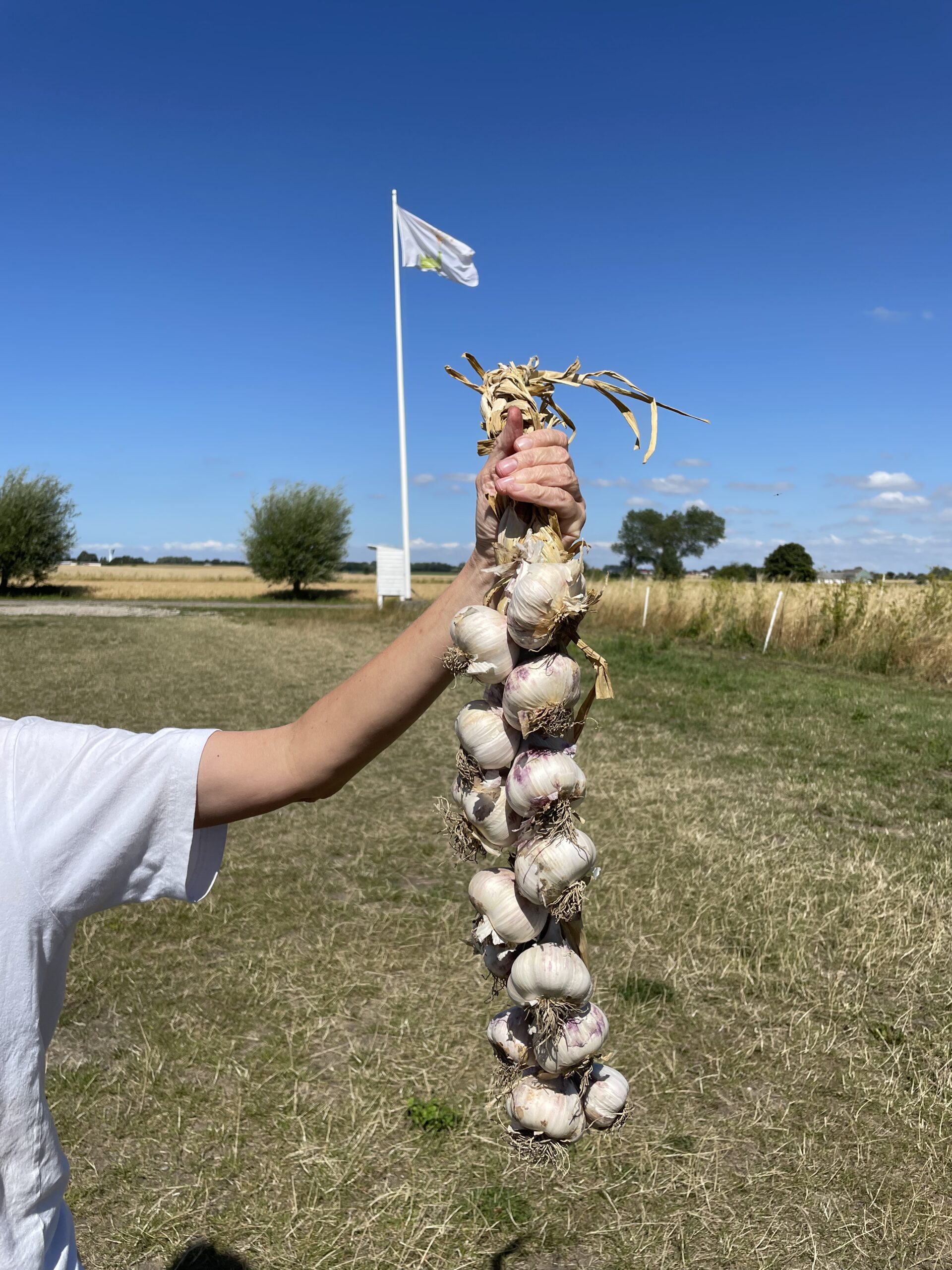 Rejäl vitlöksfläta med mellan 12 och 15 lökar av sorten Therador.