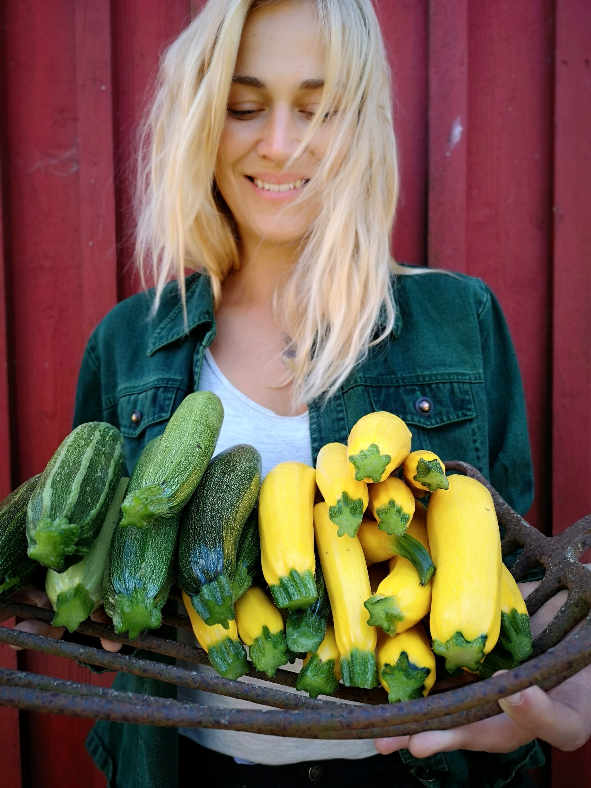 Vår zucchini är nyskördad och odlad med omsorg – mild, saftig och mångsidig i köket. Vi odlar flera sorter i olika färger och former, från klassiskt grönt till gult och randigt.