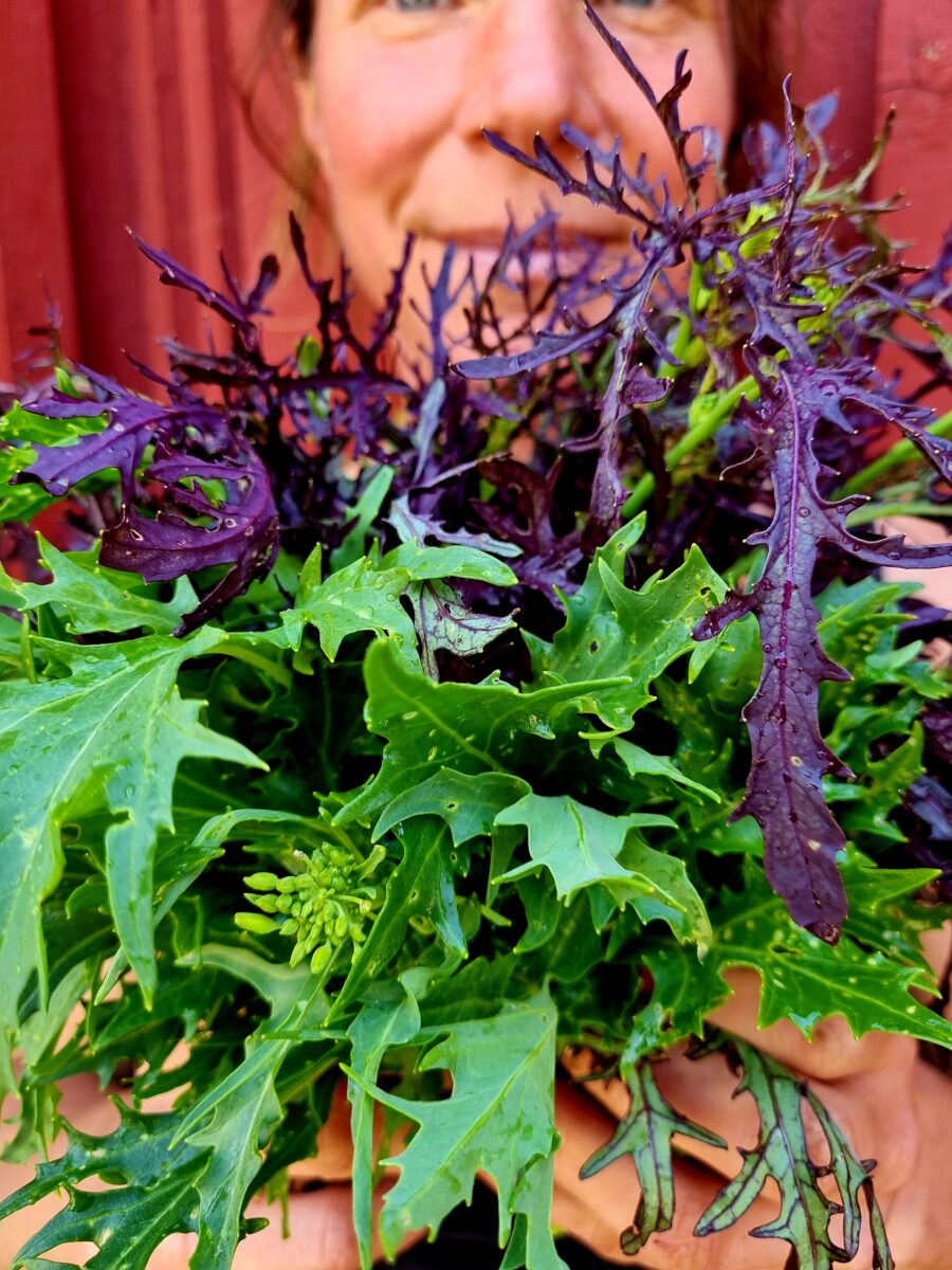 mizunasallad (eller annan grön sallad)